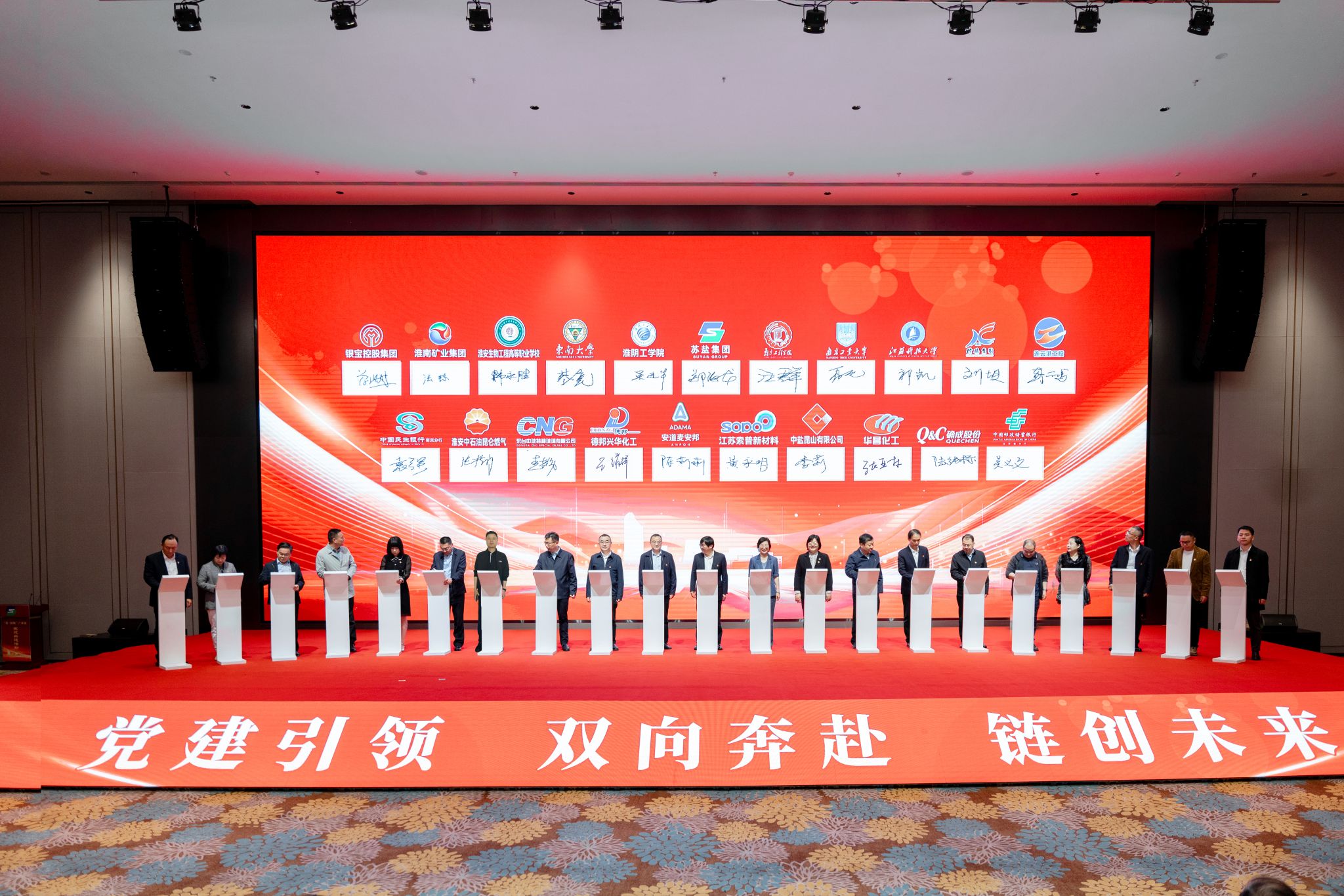 苏盐集团“盐+储能”产业链党建首批共建单位共有23家,成员包括东南大学、南京工业大学、南京工程学院、江苏科技大学、徐矿集团、淮南矿业、江苏索普新材料、华昌化工、确成硅化学、昆仑燃气、连云港工投、江苏银宝控股、中国邮储江苏省分行、中国民生银行南京分行等产业链、创新链、人才链、资金链上下游和横向合作的高校院所、央地企业、金融机构等单位。